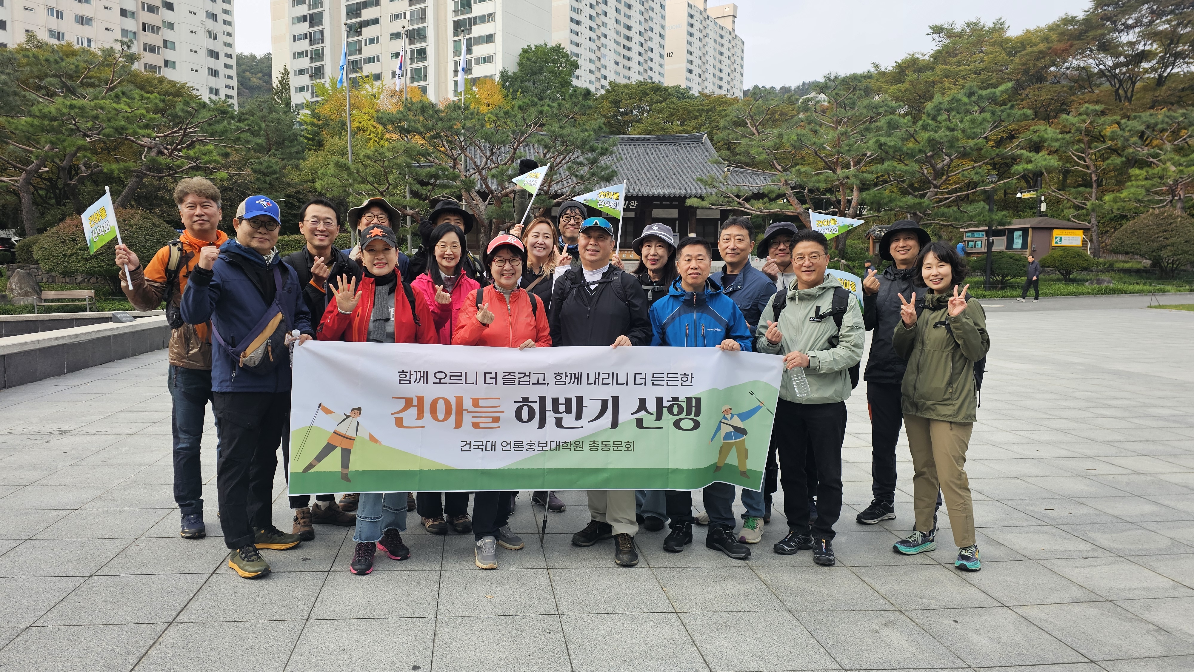이날 모임에서 ‘건아들(건국대 언론홍보대학원에서 산과 걷기를 아주 좋아하는 사람들)’은 월례 모임에 대한 안내와 함께 현 회장단의 유임을 결정하였다. 원종호 회장은 향후 집행부를 확대하고, 대학원 내 등산과 걷기 모임의 활성화를 더욱 적극적으로 추진할 계획을 밝혔다. 특히 이날 모임에서는 김태호 동문회 수석부회장의 섬세한 계획과 진행이 참가자들이 큰 호응을 받았다. 11월 월례 등산모임은 늦가을 정취를 느끼도록 22일(토) ‘남산 둘레길’에서 진행될 예정이다.